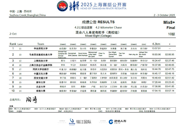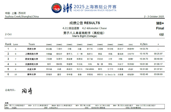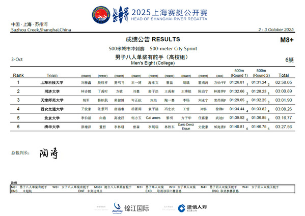 2025年上海赛艇公开赛上科大赛艇队参赛信息: